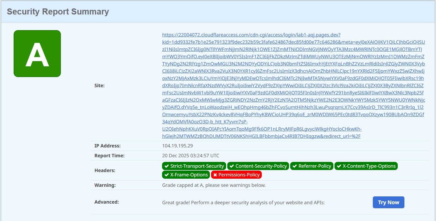 (Hình ảnh kết quả đánh giá SecurityHeaders hoặc SSL Labs đạt loại A)