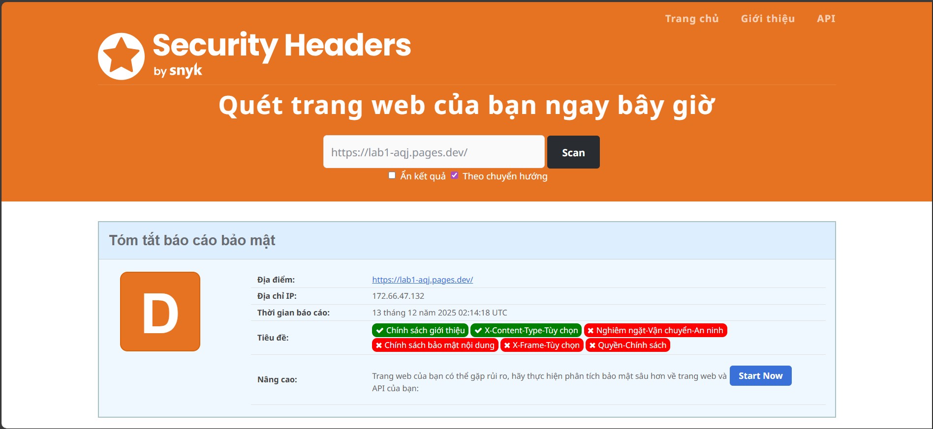 SecurityHeaders.com: chấm điểm bảo mật HTTP Headers